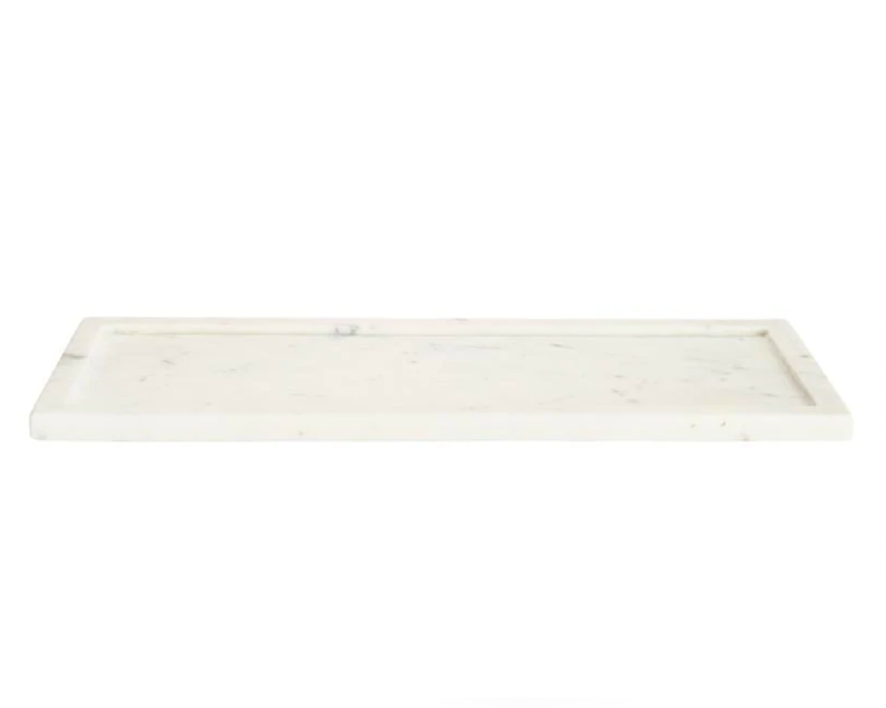 Beautifully handcrafted in India by skilled artisans, the marble accessories are made from white marble with natural purple and grey veins. A luxurious accent for your home! Use this stunning long display on your bathroom counter or display treasured objects.